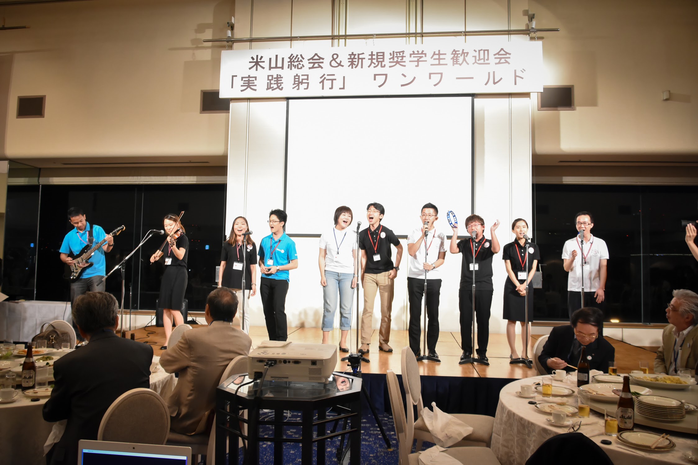 第二部:本年度新規奨学生が30数名の参加、学友一同が仲間入りした皆さんを心から歓迎します。