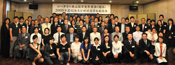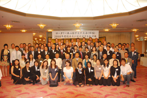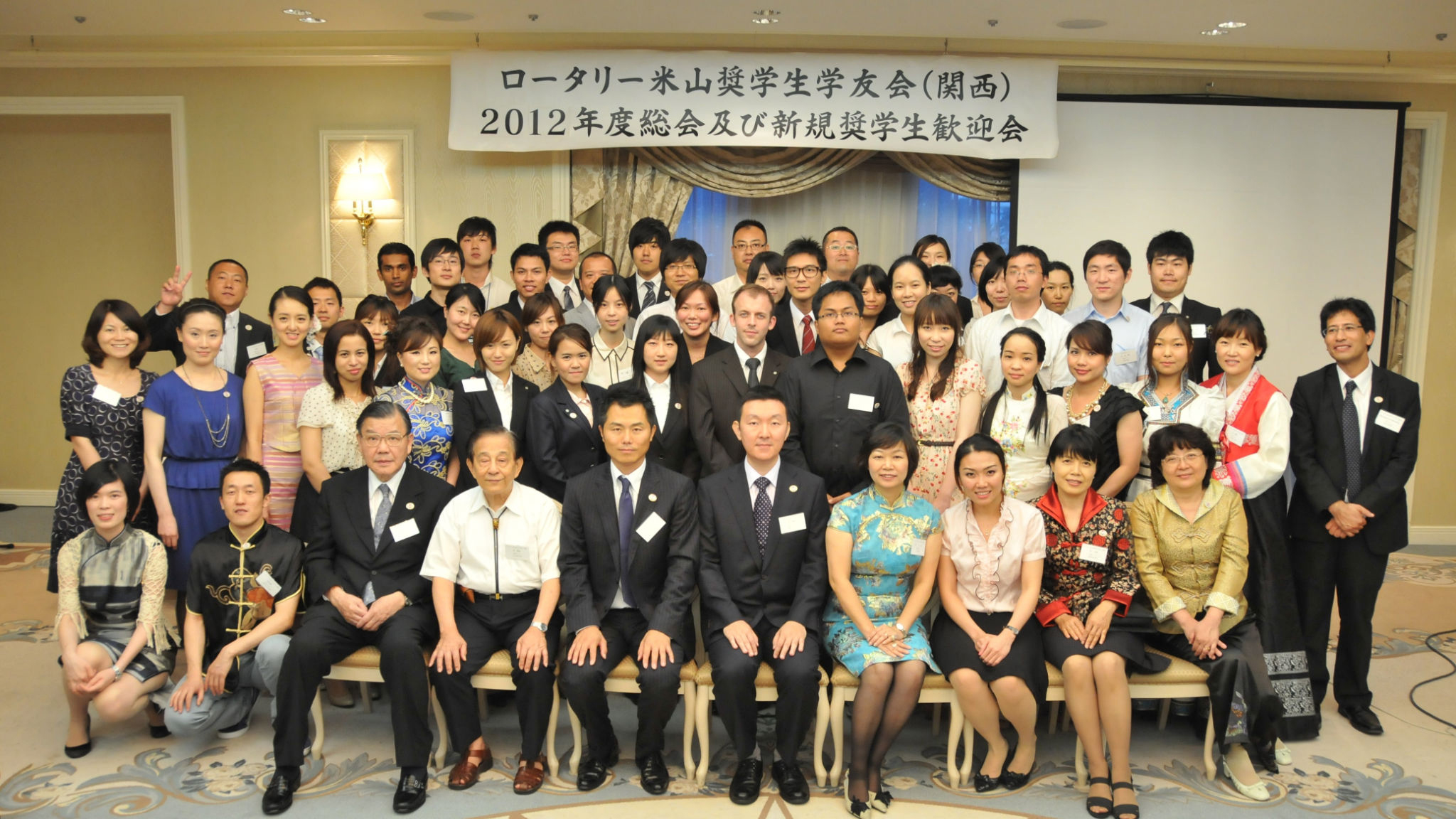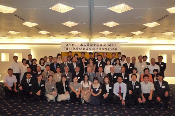 2012年7月15日に行われた2012年度の総会の記念写真です。ロータリアン58名、現役奨学生31名、学友26名、事務局員1名、計116名が参加し、親睦を深めました。